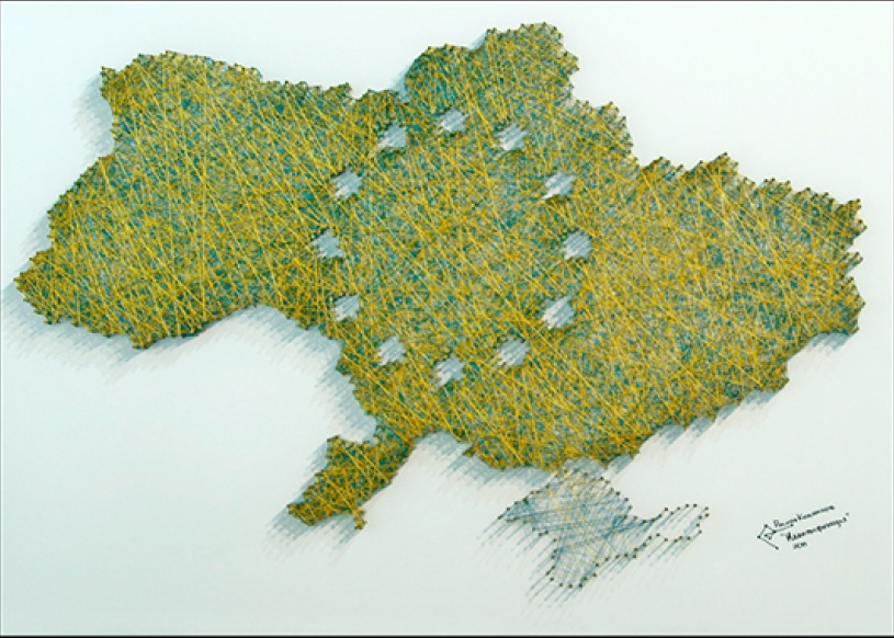 Fifteen young artists from across Ukraine are represented at the exhibition including Yuriy Shapoval, Les Ponchyshyn, Svitlana Dzyuba, Oksna Svizhak, and many others. The collection portrays the reality of the struggle to defend one’s country from invasion, but it also reflects the people’s hope for the future, a hope for a better life for their children.